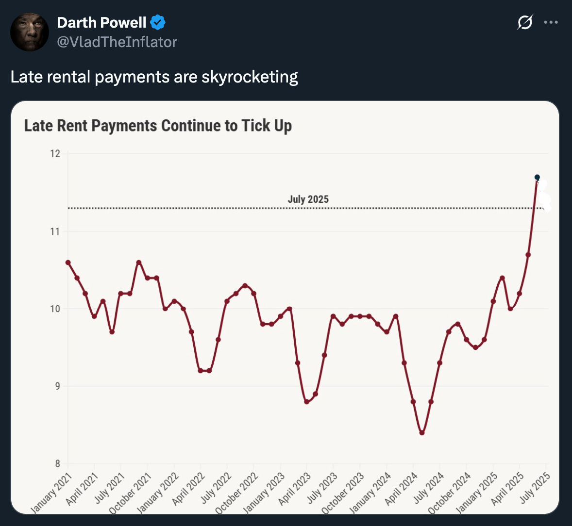 Late rental payments are skyrocketing, climbing steadily since 2021. The data shows a sharp spike under the current administration—a clear sign that families are struggling just to stay housed.